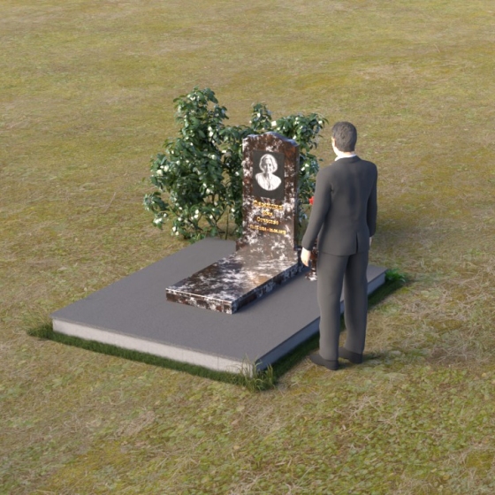 Плавные линии и обтекаемые формы этого надгробия символизируют покой и умиротворение, которые обретает душа после земных испытаний. Волнообразный верх стелы напоминает о небесном своде, о бесконечности бытия и о надежде на вечную жизнь. Зеркальная полировка камня, отражая окружающий мир, говорит о неразрывной связи между миром живых и миром ушедших. Она словно приглашает нас заглянуть вглубь себя, вспомнить о своих корнях и задуматься о смысле жизни.