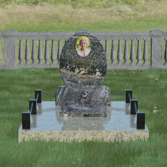 Данное ритуальное изделие притягивает взгляд своей совершенной гармонией и мягкостью линий. В основе композиции лежит безупречный овал — символ вечности, завершенности и бесконечного круговорота жизни. В отличие от строгих прямоугольных форм, эта стела выглядит более одухотворенно и спокойно, привнося на место захоронения атмосферу умиротворения. Особое внимание заслуживает художественная обработка основания: овальная плита плавно переходит в изящную подставку с мягкими «плечами» или волнообразными изгибами, которые создают надежную опору для всей конструкции. Каждая грань камня проходит многоступенчатую ручную и станочную обработку, что позволяет добиться идеальной гладкости. Отсутствие острых углов делает надгробие визуально легким, несмотря на значительный вес натурального камня.