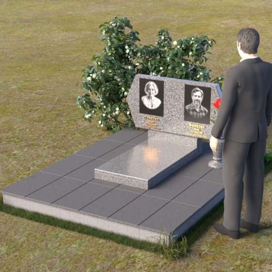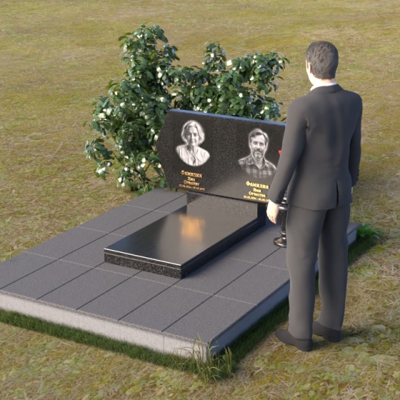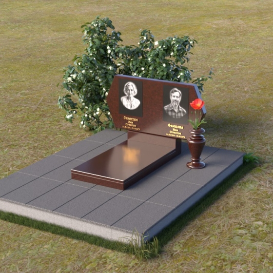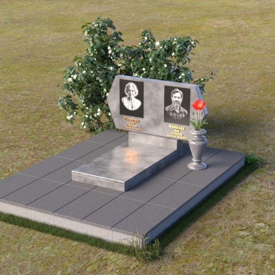 Величественная стела памятника ПГ004 представляет собой элегантное сочетание строгих линий и мягких, сглаженных углов. Верхняя часть имеет форму, близкую к прямоугольнику, но с деликатно скошенными верхними углами, что придает ей визуальную легкость и утонченность. Боковые грани плавно переходят в лицевую поверхность, создавая ощущение обтекаемости и завершенности. Фаска по периметру лицевой стороны подчеркивает четкость контура и добавляет дополнительный объем. Нижняя часть стелы, служащая основанием для размещения информации и портретов, выполнена в форме прямоугольной призмы, гармонично сочетающейся с основной частью памятника. Подставка под вазу выполнена в классическом стиле и имеет плавные обтекаемые формы.
