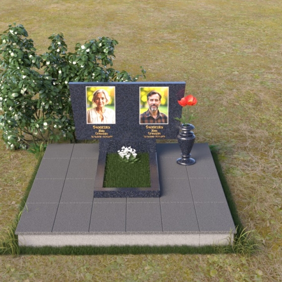 Асимметричная форма стелы не случайна. Она символизирует жизненный путь, который не всегда бывает прямым и предсказуемым. Скошенный угол, напоминающий крыло, несет в себе идею защиты и утешения, а также веру в загробную жизнь. Зеркальная полировка, в свою очередь, отражает свет и символизирует чистоту души и вечную память. Горизонтальная плита, расположенная под стелой, олицетворяет землю, на которой покоится прах усопших, и одновременно служит связующим звеном между земным и небесным мирами. Общий вид памятника создает ощущение покоя и умиротворения, приглашая к тихой молитве и воспоминаниям.