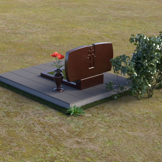Геометрия модели тщательно продумана. Верхняя часть стел имеет скругленные углы, смягчающие строгость линий и придающие композиции более человечный облик. Между портретами выгравирован лаконичный православный крест, напоминающий о духовности и вере. Основание стел переходит в горизонтальную плиту, образуя единую плоскость с надгробной плитой. Надгробная плита выполнена в виде прямоугольника с полированной поверхностью, отражающей небо и окружающий мир. У основания композиции располагается аккуратная ваза из черного гранита, предназначенная для живых цветов, как символ непреходящей любви и уважения.