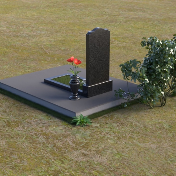В композиции памятника ПВ 007 доминирует вертикальная стела, чья форма сочетает в себе строгость и изящество. Верхняя часть памятника увенчана мягким, волнообразным изгибом, словно застывшая мелодия печали. Боковые грани стелы плавно скруглены, смягчая ее очертания и придавая ей визуальную легкость. Нижняя часть стелы переходит в горизонтальную плиту, также отполированную до зеркального блеска. Фаски на краях плиты деликатно скошены, создавая игру света и тени, подчеркивающую глубину и объем. Поверхность плиты служит основанием для гравировки эпитафии или памятных дат, а также может служить местом для возложения цветов.